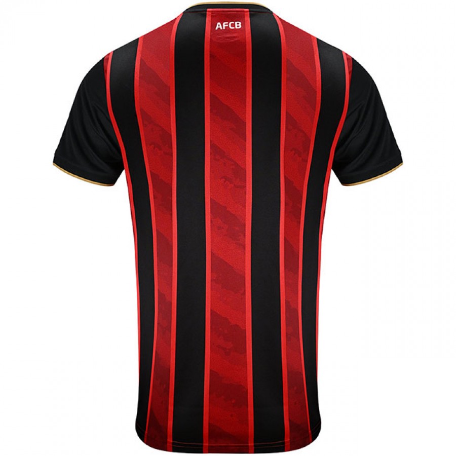 Show your true colours and support AFC Bournemouth in style with the official 25/26 men's home shirt. The match specification jersey blends performance with passion, featuring striking red and black stripes inspired by 'rippled sand' patterns. The gold trim on the sleeves and collar adds a refined edge, while the embroidered club crest and Umbro stacked diamond complete the look. Built for both comfort and endurance, this shirt features moisture-wicking fabric to keep you cool and dry on match days or while repping your club off the pitch - and made from 93% recycled polyester, it’s as sustainable as it is stylish. . The AFCB initialling at the rear neck delivers a proud finishing touch. Whether you're in the stands, on the street, or on the pitch, the 25/26 home shirt is your ultimate statement of loyalty.
