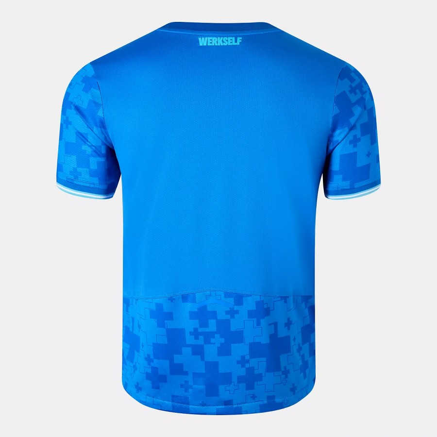 The 2025-26 Bayer 04 Third Kit is inspired by Leverkusen’s ‘Farbenstadt’ nickname. The expression, meaning ‘city of colors’, is reflected in the shirt’s striking shade of ‘blue oasis.’ The bright blue design also features an all-over, sublimated graphic print. Equilateral crosses, in various sizes, overlap and intersect with each other, creating an abstract interpretation of the familiar Bayer Cross. The Bayer 04 Third Jersey is made from lightweight, polyknit fabric and features moisture-wicking NB DRY technology.