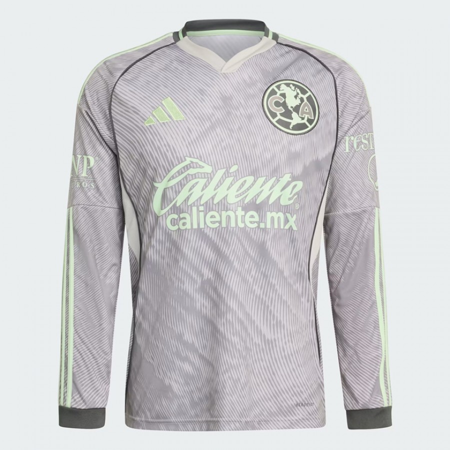 The Club America Adult Third Long Sleeve Jersey 25-26 is an ode to the iconic Coloso and their passionate supporters. Crafted with thoughtful attention to detail, it's designed for those who live and breathe the beautiful game. Made with interlock fabric, this jersey offers durability and a soft feel against the skin. The henley neckline adds a modern twist to the classic design, while the woven club crest adds an extra touch of authenticity, making it a must-have for fans. Integrated Aeroready technology is designed to manage your body's sweat, helping you feel dry and comfortable for longer so you can focus on the game. Side mesh inserts support ventilation for a fresh feel, even during intense matches. Whether you're cheering from the stands or gathered with friends, this jersey is your go-to companion. With adidas, it's more than just clothing. It's a way of life.