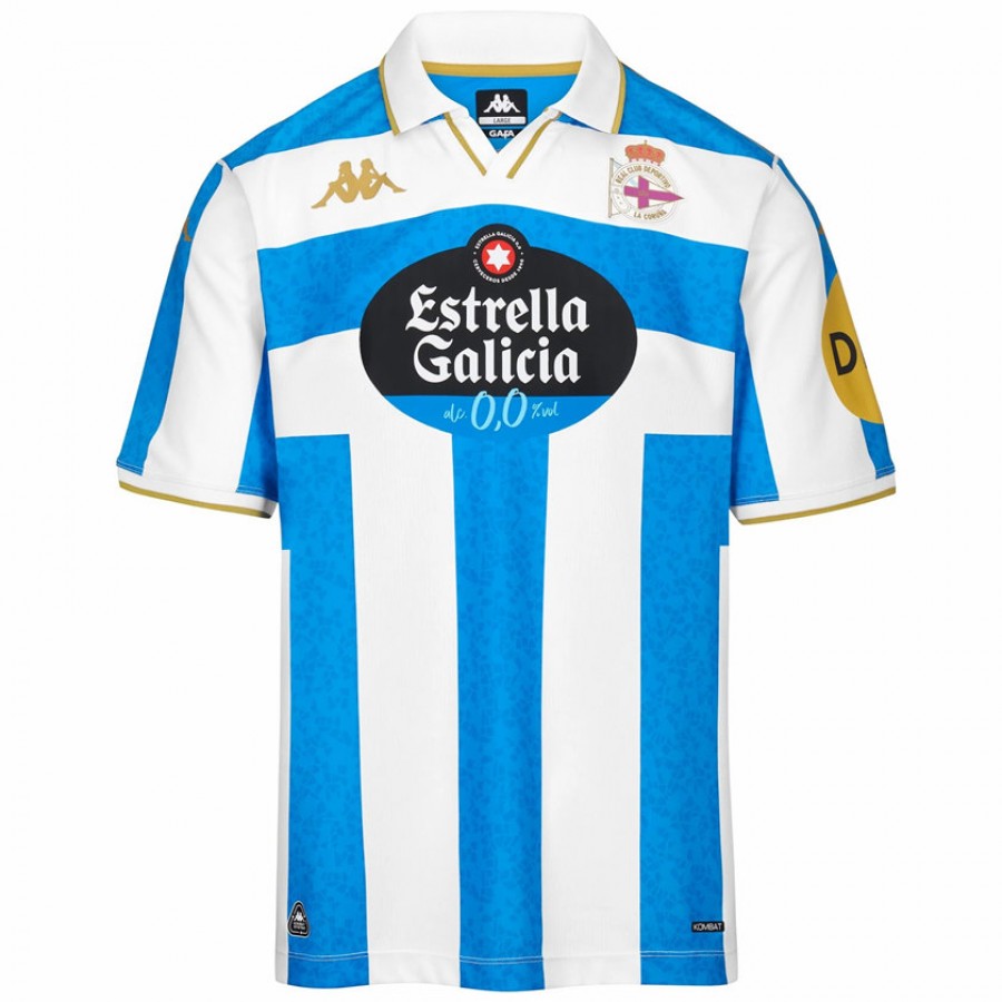Game shirt KOMBAT™ 2026 for man in recycled textured fabric and with HYDRO-WAY PROTECTION technology. REGULAR FIT. Short sleeve, polo collar and inserts on bottom sleeves. Omini logo on chest and on sleeves applied with heat transfer. Team patch in silicone. Lettering applied with heat transfer on inner collar. RC DEPORTIVO DE LA CORUNA.