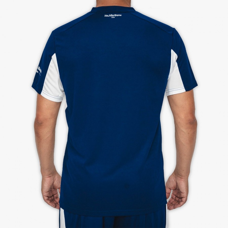 The Castore Hertha Berlin 25-26 home jersey introduces a fresh interpretation of the club’s iconic blue and white stripes. It features three wide vertical stripes on the front, two in navy blue and one in white, distinguished by a special brushstroke effect.