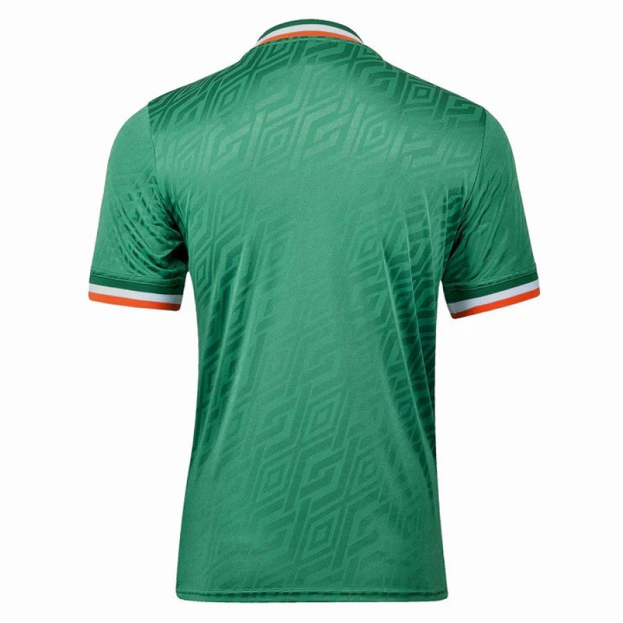 The 17-3 jersey is fashioned from green jacquard, bearing an all-over tessellated design which combines the iconic Umbro logo with the classic Celtic Knot. Other nods to Ireland include the textured crest bearing Saint Patrick’s insignia, and the flat knit collar and sleeve cuffs which carry the colours of the Irish flag.