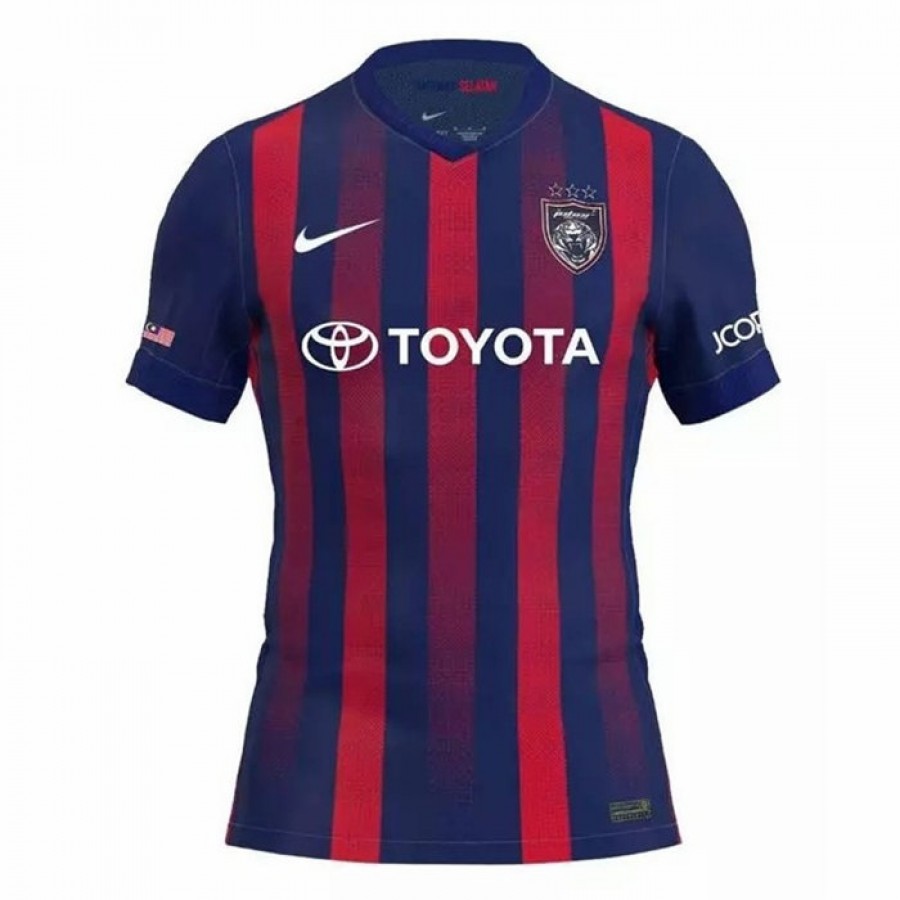 The 2025-26 Nike home jersey features textured red and blue stripes, a full-colour crest and partner/sponsor logos - including the “Swoosh” of the US supplier - in white.