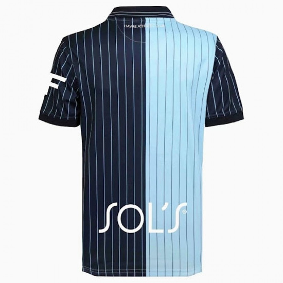 The Umbro Le Havre 25-26 football jersey combines HAC’s traditional Cambridge blue and Oxford navy halves, enhanced with fine vertical pinstripes for a refined 90s-inspired look. A bordered collar and subtle details on the back and hem highlight the partnership between the historic French club and the iconic English brand.