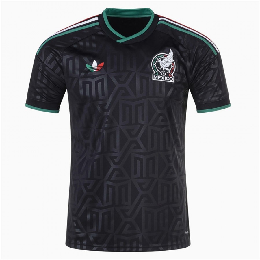 The Mexico Mens Third Jersey 2026 has been created in cooperation between Adidas and Mexican brand Someone Somewhere. Someone Somewhere is a Mexican lifestyle brand committed to lifting rural artisans out of poverty. 'Someone' represents the people who create the products, while 'Somewhere' refers to the communities where they live. The Adidas x Someone Somewhere Mexico 2026 World Cup third jersey is predominantly black, with classic Aztec-style 'M' and 'X' graphics, giving it a dynamic and distinctly Mexican identity. These designs have been created by rural artisans.
