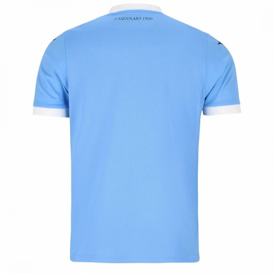 The SS Lazio Home Jersey 25/26 by Mizuno consists of an embossed front body with mesh back and plain set-in sleeves. Solid colour ribbed crew neck collar and sleeve cuffs. Plain back neck tape. Tatami 3D silicone club crest and heat transfer Mizuno logos with additional Mizuno logos to the sleeves. 9 GENNAIO 1900 heat transfer sign off sits at the back neck.