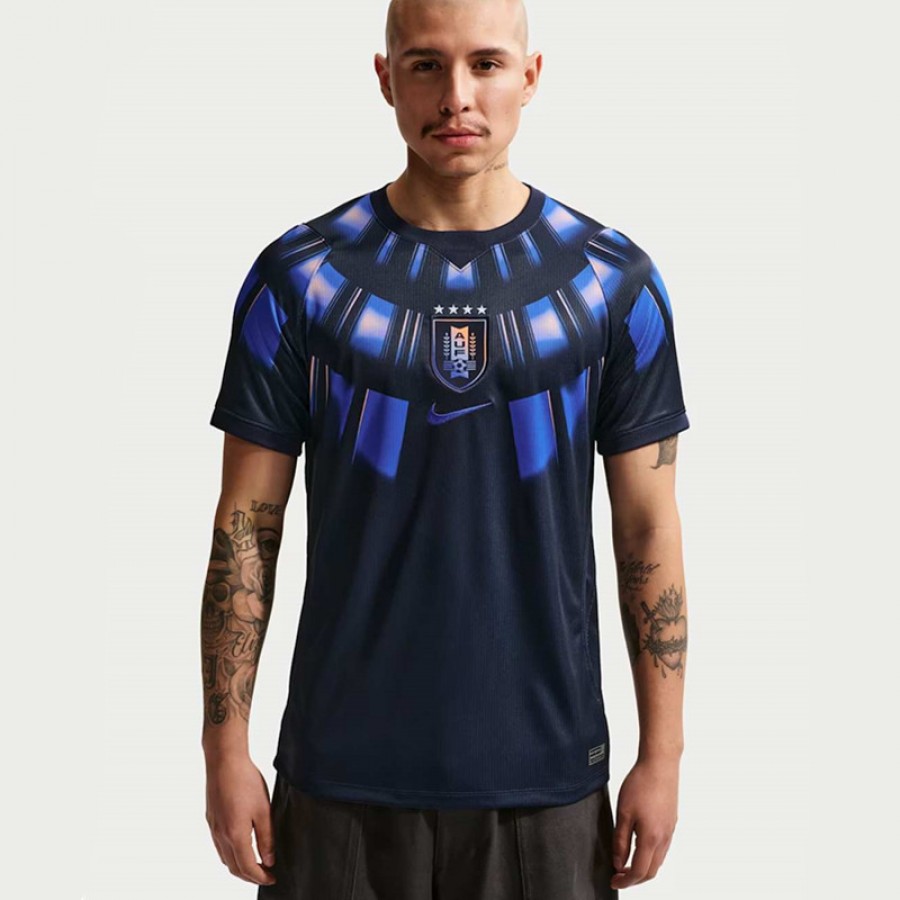 Uruguay's 2026 Away jersey. The design honors Uruguay as the very first world champions of soccer and embodies their desire to guard their throne. Nike Dri-FIT technology moves sweat away from your skin for quicker evaporation, helping you stay dry and comfortable.