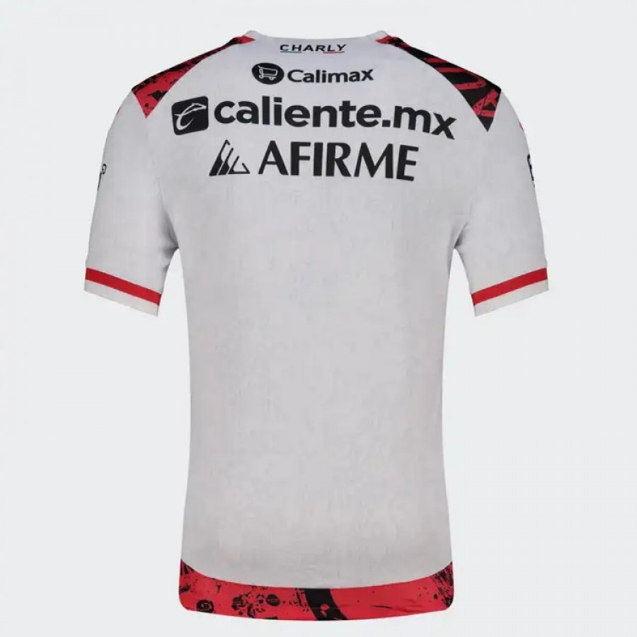 Wear the colors of La Jauría with the Xolos Away Jersey for Men 25-26, a garment that pays homage to the urban symbols and border identity of Tijuana. With a design that fuses sports and culture, this jersey is a statement of pride, passion and style both on and off the field. The jersey features a white design, contrasted with red mesh side panels that enhance ventilation and add a dynamic visual touch. The V-neck and sleeves with white and red rib give it a clean and modern finish. The traditional Club Tijuana crest in silicone transfer stands out in great detail, reaffirming your loyalty to the Xolos. As a nod to the club's urban roots, the design includes elements representative of the casino, such as the number 333, considered a key within the team. In addition, it incorporates a mesh graphic with an urban style print that matches the design of the home jersey, using a red base with white details to reinforce the visual link between the two versions. Made of 100% soft-touch polyester, it incorporates DRY FACTOR technology, which will keep you dry for longer, ensuring extra freshness before, during and after each activity or workout thanks to its specialized moisture transfer fabrics. UV Block technology offers protection against ultraviolet rays, ideal for outdoor workouts or matches, while Nano Guard fights bacteria that cause unexpected odors, ensuring freshness for longer. Carry with you the indomitable spirit of Tijuana. A design with history, attitude and a lot of soccer.